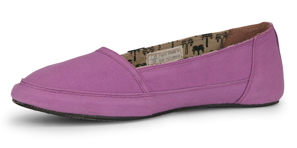 “Kelapa" is the Indonesian word for coconut, and while you may not live near any coconut bearing palms, we hope this beachy shoe will make you feel a little closer to the tropics. Kelapa is similar to our classic “Pantai” beach shoe, but with a feminine twist. It features a slightly more pointed toe and a lower foot covering which matches up well with both beach and night time outfits. Available in a variety of colors and hand dyed Batiks.